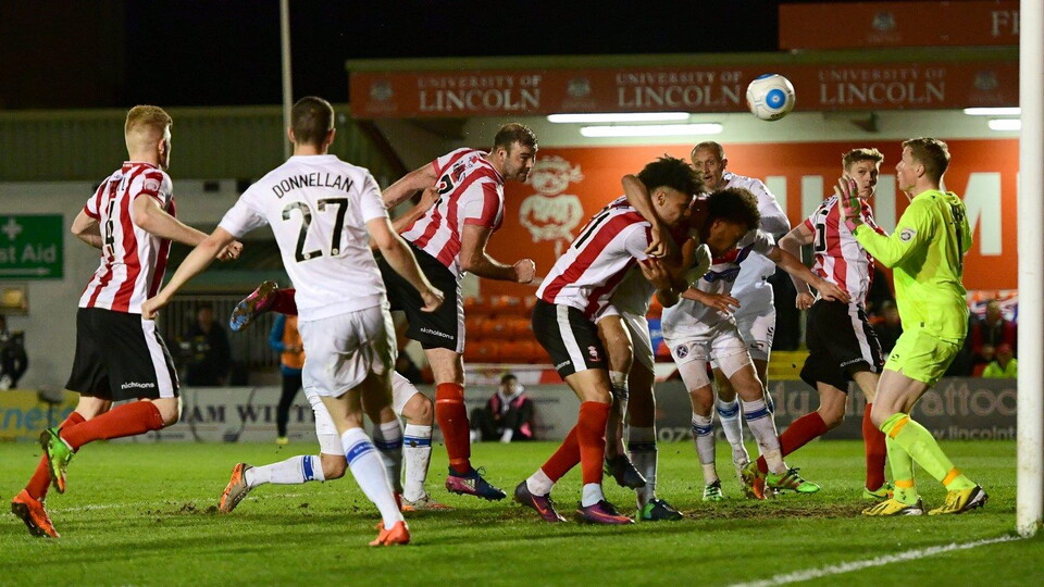 The Imps got off to a lively start, winning two corners in the opening minute and when Sam Habergham swung the second one in appeals for a foul on Rhead were waved away by referee Backhouse.