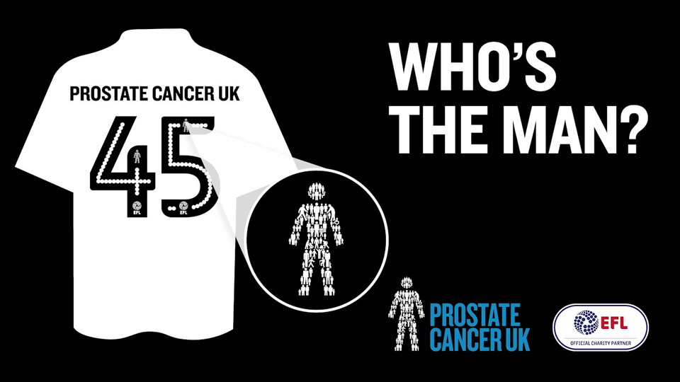 Prostate Cancer UK is the Official Charity Partner of the EFL. Their “Man of Men” logo sits proudly in the squad numbers of every one of our player’s shirts. It also adorns the lapels of football managers and pundits across the land. And is worn proudly by football fans like Kevin Webber and Lloyd Pinder.