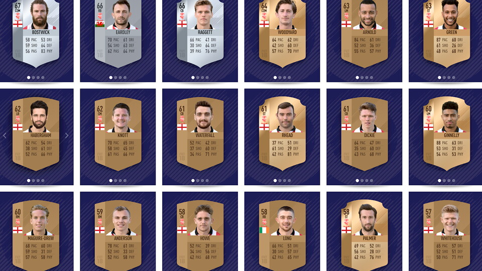 We have three players who are classed as 'silver cards' for FIFA Ultimate Team, who are Bostwick (67 rare silver), Neal Eardley (66) and Sean Raggett (66 rare silver).