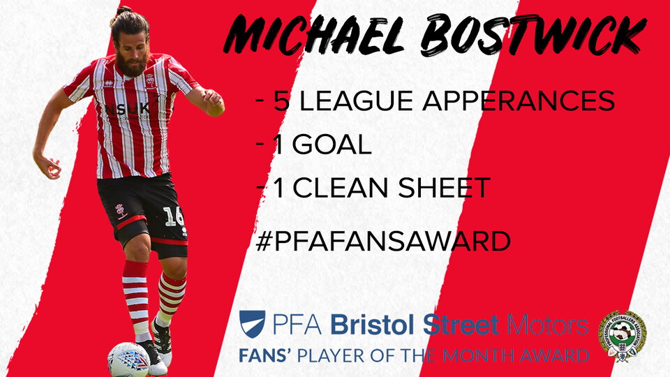 Imps central defender and midfielder Michael Bostwick has been nominated for the Bristol Street Motors PFA Player of the Month Award for August.