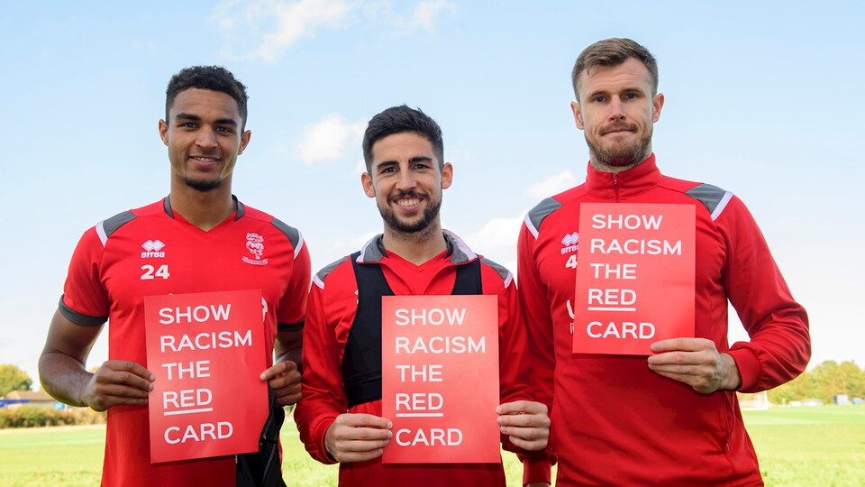 Lincoln City will be wearing red in the pre-match warm-up on Friday in support of the 'Show Racism the Red Card' campaign this weekend.