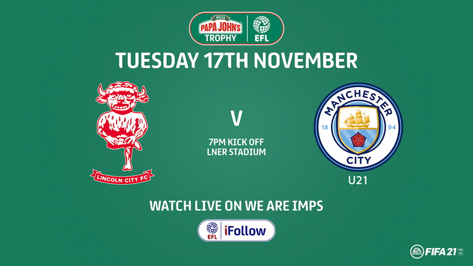 Our Papa John’s Trophy fixture on Tuesday versus Manchester City Under 21’s will be available to watch on WeAreImps iFollow on Tuesday both domestically (7pm KO) and internationally.
