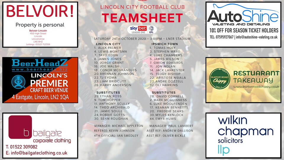 Club news 201025 Ipswich Team Sheet 25th October 2020 Following yesterday's Sky Bet League One match at LNER Stadium, Imps and Ipswich Town fans can download the official team sheet for free. To do this, simply click the PDF link at the bottom of the article and save this to your device. Ipswich Team Sheet.pdf