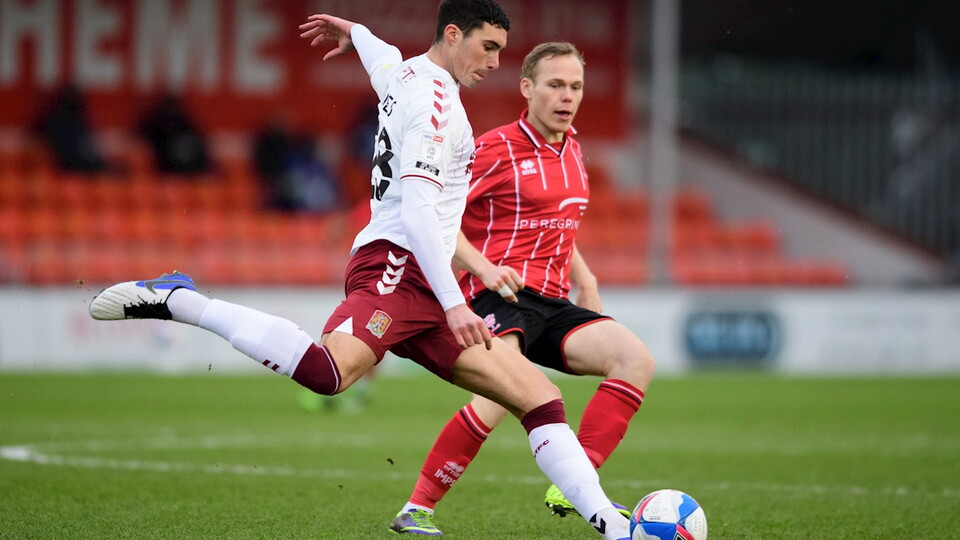 The men in red and white were still on the front foot as the half time whistle approached and Jorge Grant wasn’t far away with a free kick from the edge of the box which fell just wide of Christy Pym’s left post.