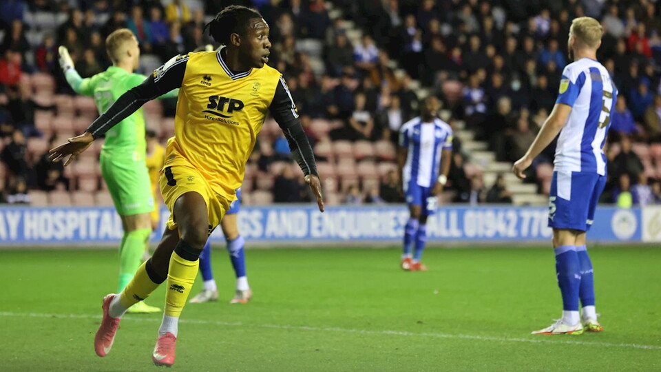 Dan Nlundulu declared his season up and running after his first goal for the Imps set his side on their way to victory at Wigan Athletic.