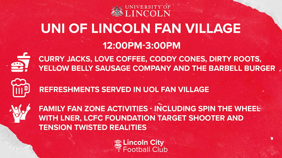 Club partners LNER are attending the match, and will have a spin the wheel competition in the University of Lincoln Fan Village where fans can win prizes.