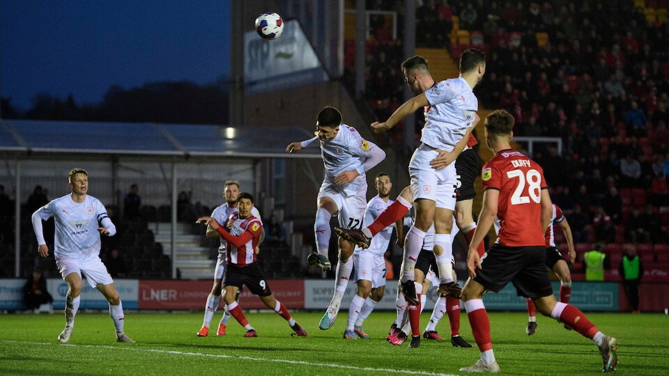 The Imps had a chance of their own just before the break as Harry Boyes’ corner was met by O’Connor whose towering header across goal bounced off the underside of the bar before the follow up was sent over by Lasse Sorensen.